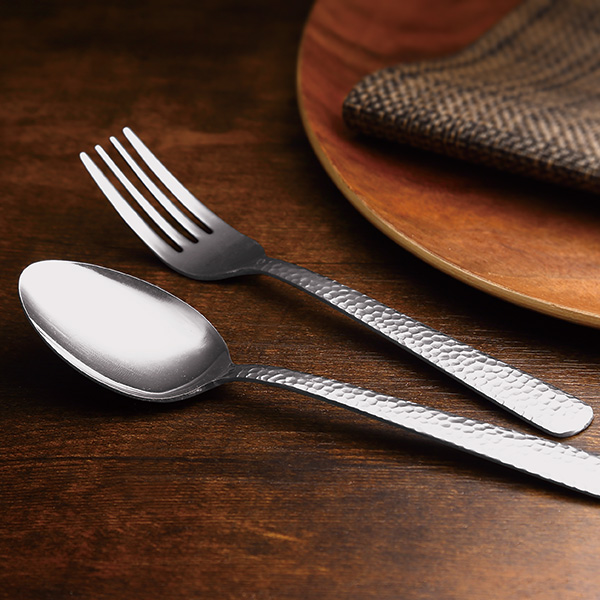 金属加工の町として有名な新潟県燕市で作られた、美しい鎚目がポイントのカトラリーセットです。