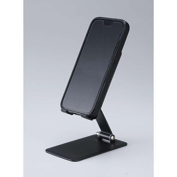 丈夫で頼りになるスチール製のスタンド。スマホだけでなくタブレットにも使える機能派です。