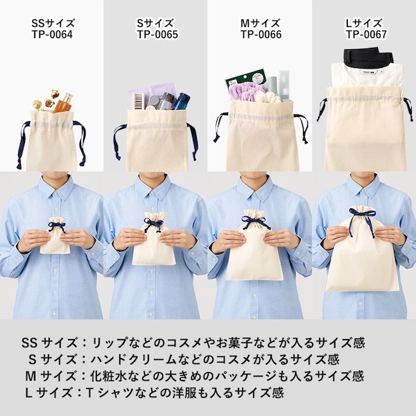 7色展開のカラーリボンがポイントのコットン巾着です。
