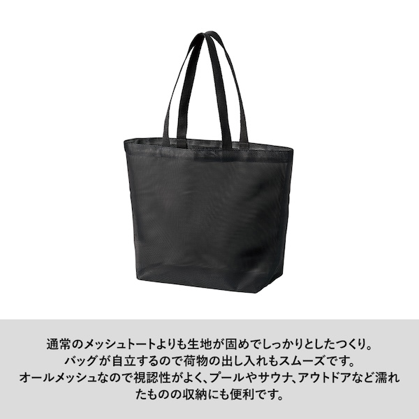 透け感のあるメッシュ素材のトートバッグです。
