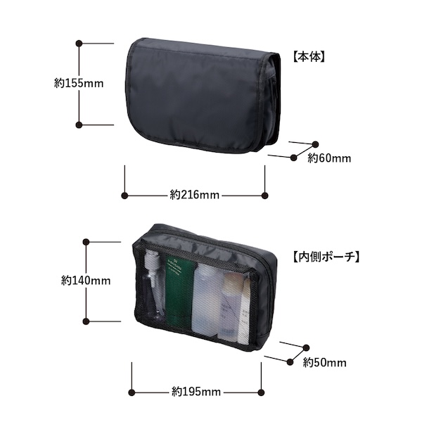 | サイズ | 本体/約216x155x60(mm)、内側ポーチ/約195x140x50(mm) |