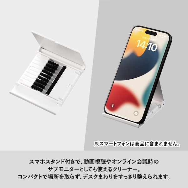 スマホスタンドにもなる2WAY PCクリーナーです。