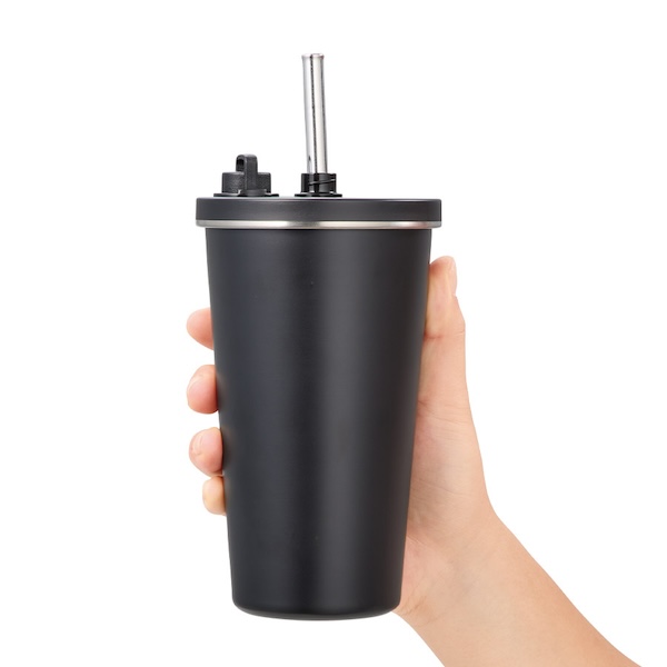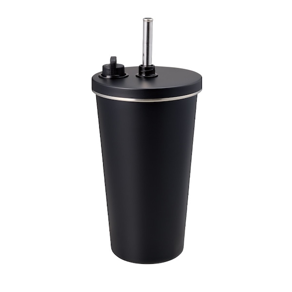 スタイリッシュなデザインが特徴のストロー付きサーモタンブラーです。