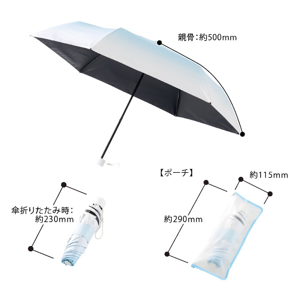 | サイズ | 傘:親骨/約500(mm)、折りたたみ時/約230(mm) ケース:約290x115(mm) |