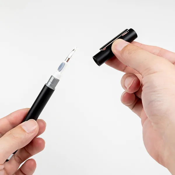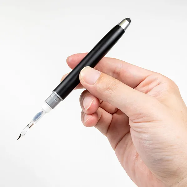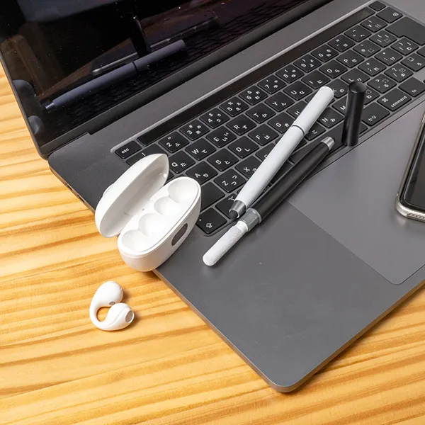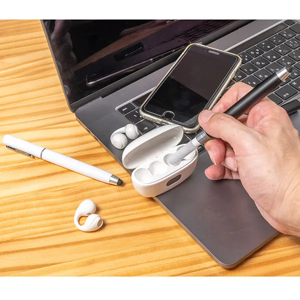 タッチペンとワイヤレスイヤホン用クリーナーがひとつになった、多機能なスマートツール。スマホやタブレットの操作に便利なタッチペンとして使用でき、キャップを外すと、ブラシ・スポンジ・スティックの3種のクリーナーが登場。イヤホンの細部までしっかりお手入れできます。ガジェットを清潔に保ちたいデジタル世代にぴったりで、IT系企業や学生向けのノベルティ、テレワーク関連イベントでの配布にもおすすめです。