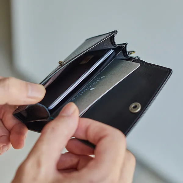 小銭が入るファスナーポケットと仕切り付きカードポケットが1つになったカードケース