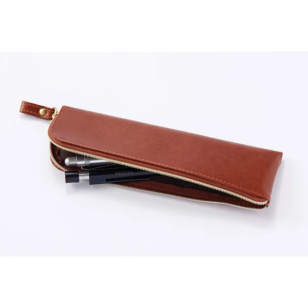 シンプルな形のペンケース。メッキファスナーを使用して高級感があります。