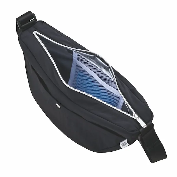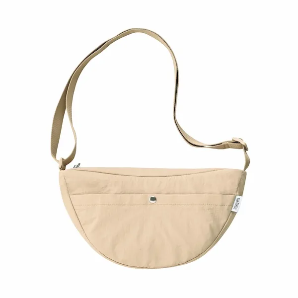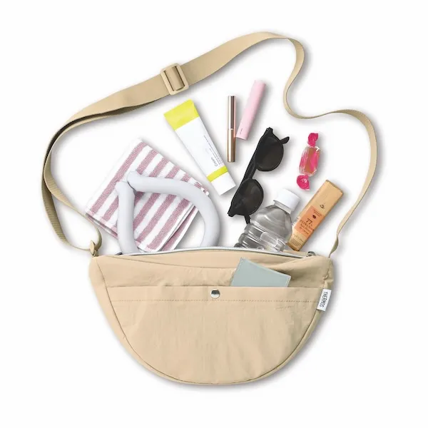 ハーフムーン型でおしゃれに持ち運べ、アイソテック採用の断熱構造が外熱を遮り高い保冷力を発揮、ペットボトル3本分の収納力でチョコやコスメの持ち運びにも最適な保冷バッグ。