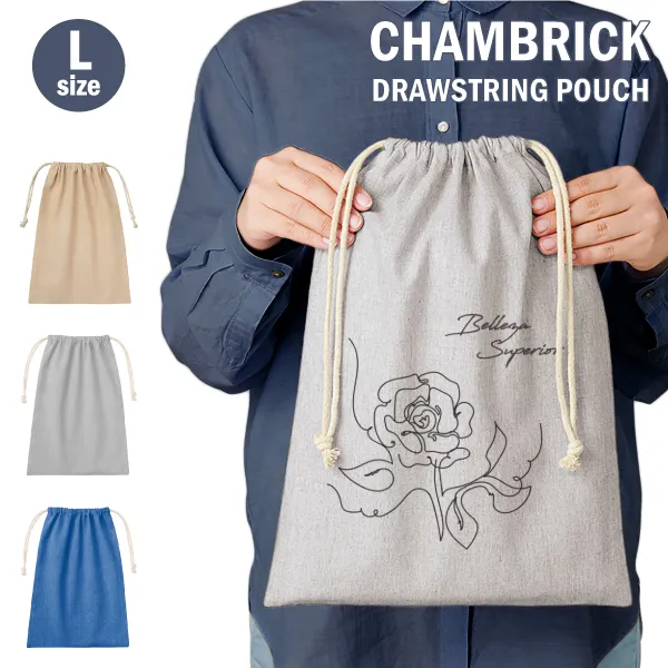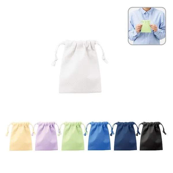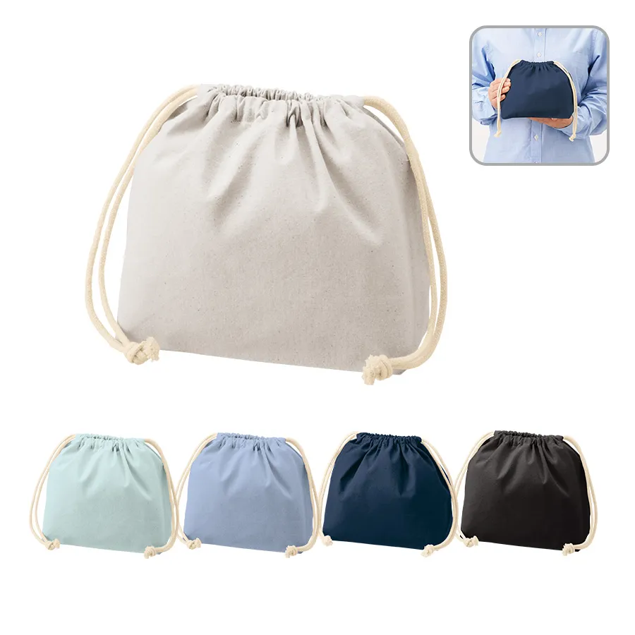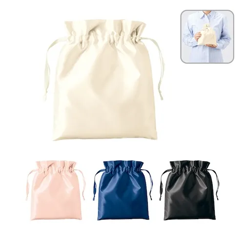 軽くて扱いやすく、展示会やノベルティの定番の巾着。サイズ展開が豊富で、文房具や雑貨、小型ガジェットの収納にも重宝します。