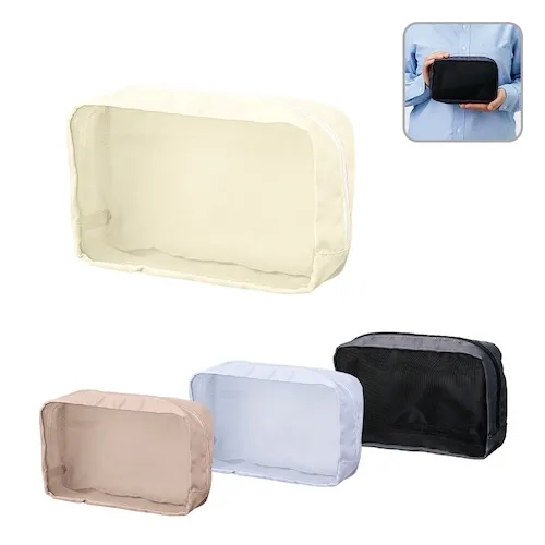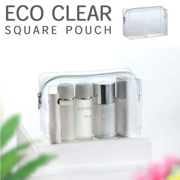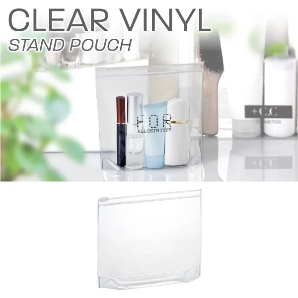 PVCなどのビニール素材を使用したクリアポーチは、見た目の清涼感と中身の見やすさが特長。