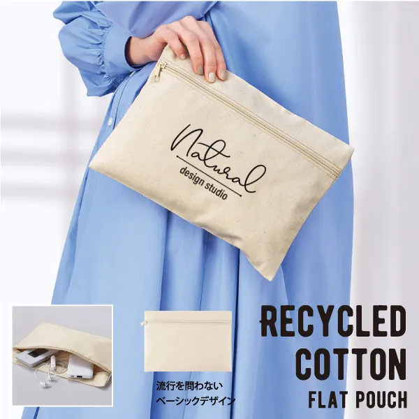 フェアトレードコットンスリムスクエアポーチ(S)ナチュラル