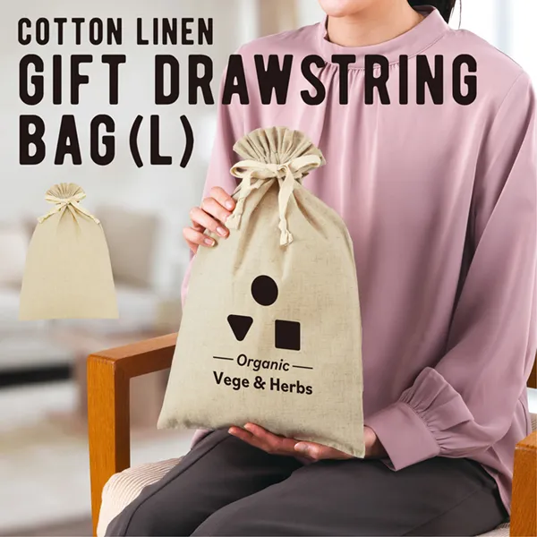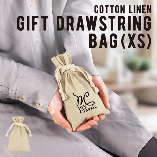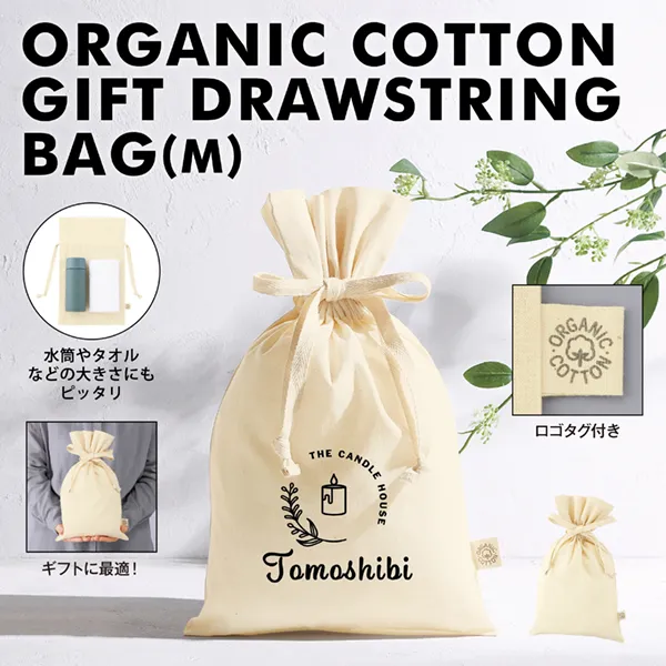 不織布やコットン素材でコストも抑えやすいのが魅力。紐をキュッと引っ張る動作により、プレゼントを開けるようなワクワク感も演出可能です。