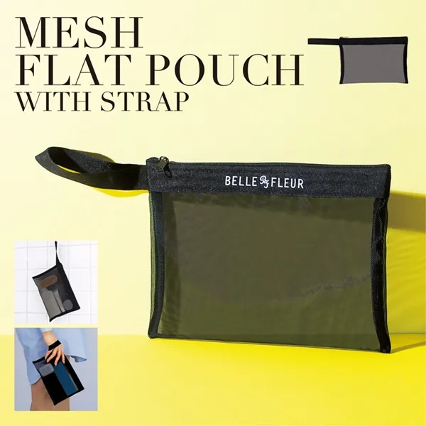 プラシャープ・ストラップ付きメッシュフラットポーチ
