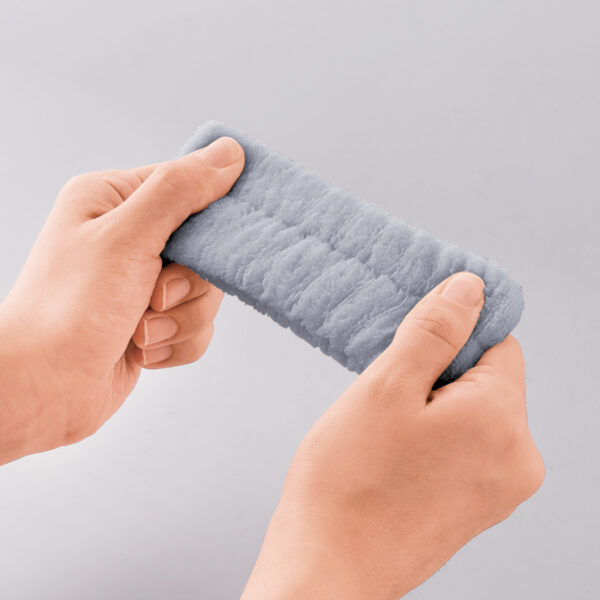 しかし、これからは「ふわのわ洗顔用リストバンド」を両腕にさっとはめるだけでOK!吸水性が高く伸縮性のあるリストバンドが手首にフィットし、顔を上げている時もすすぐ時も、水や泡が袖についてしまう心配はありません。