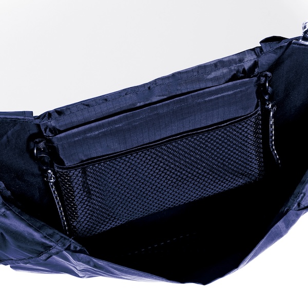 外出時はサコッシュで軽快に出かけ、帰りはエコバッグになる2WAY仕様。