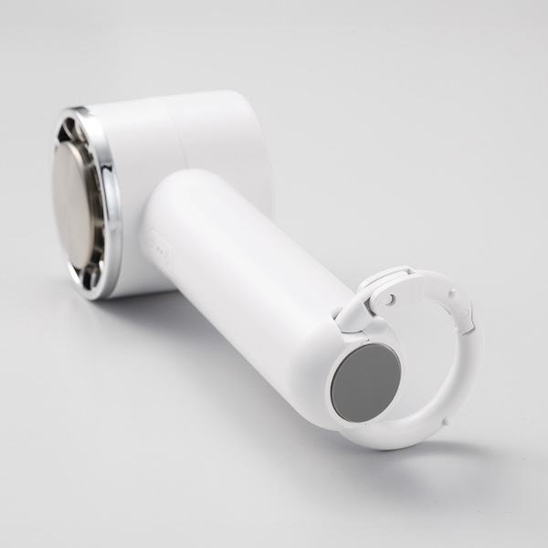 ボディはスティック状で握りやすく、またボディ下部には可動式カラビナ付きなので持ち運びにも便利です。