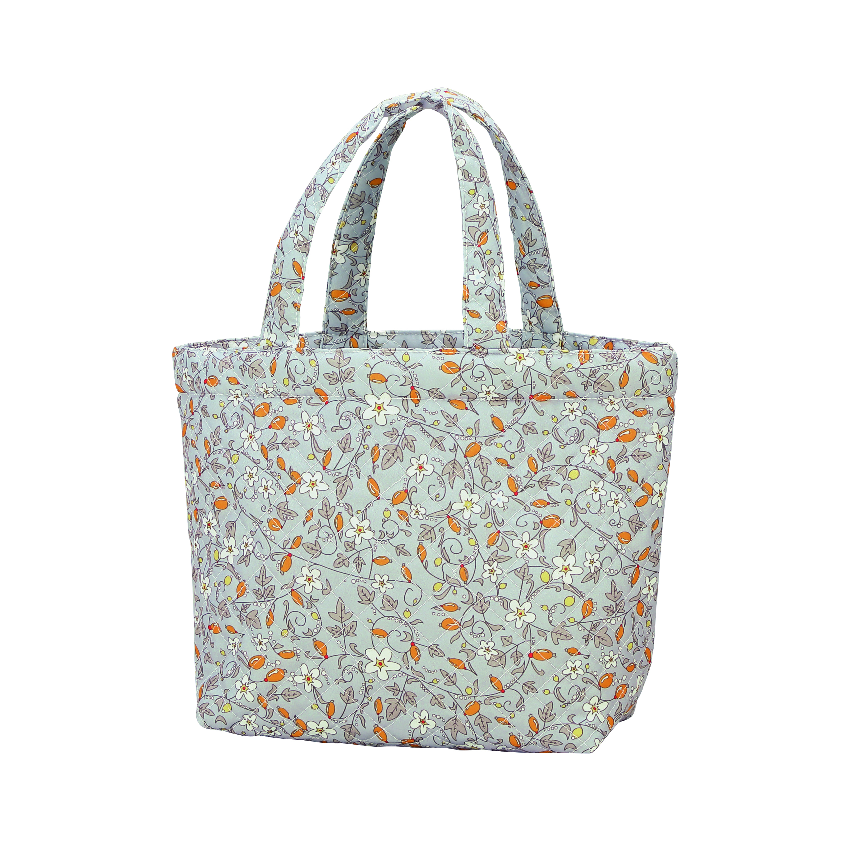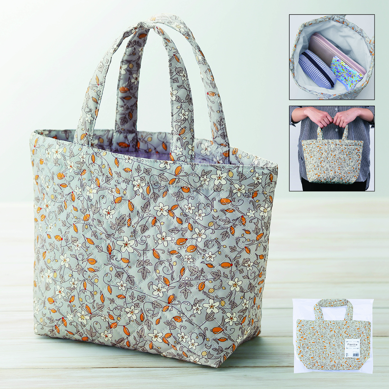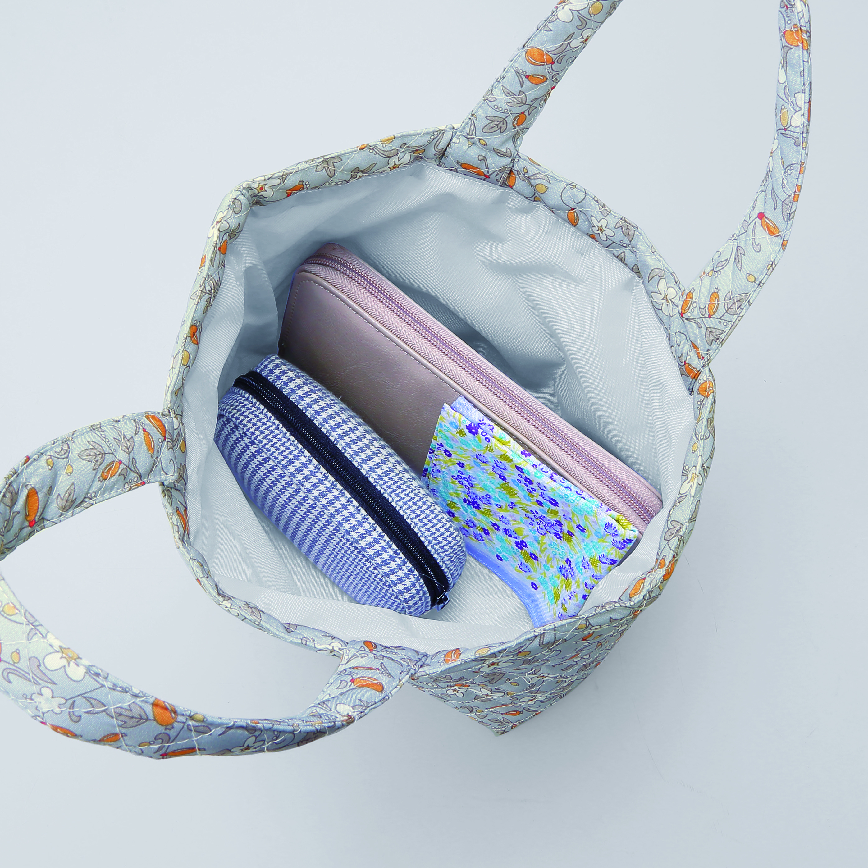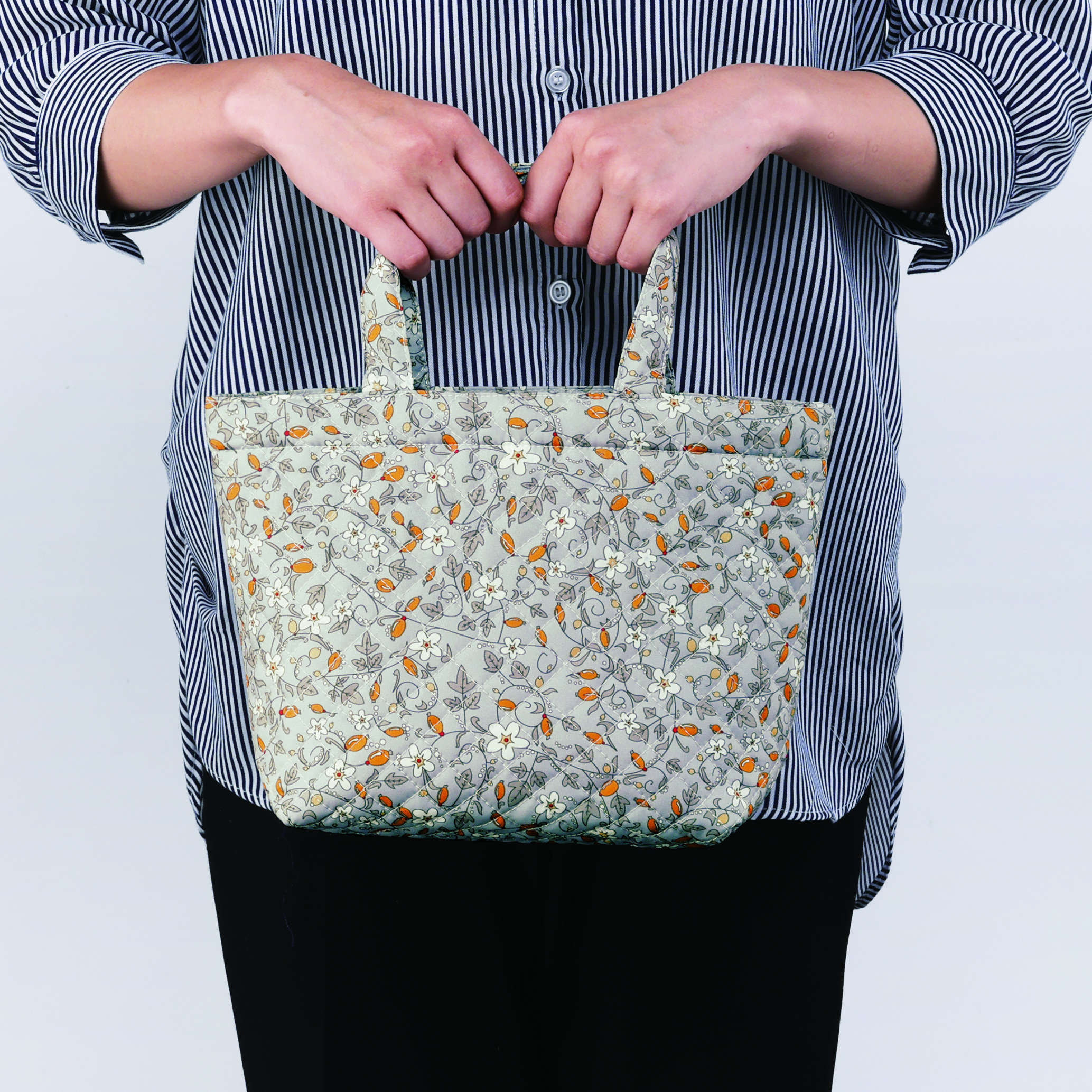 ソフトなキルティング素材が魅力のエレガントな花柄バッグ。お出掛けのサブバッグにもちょうどいいサイズです。