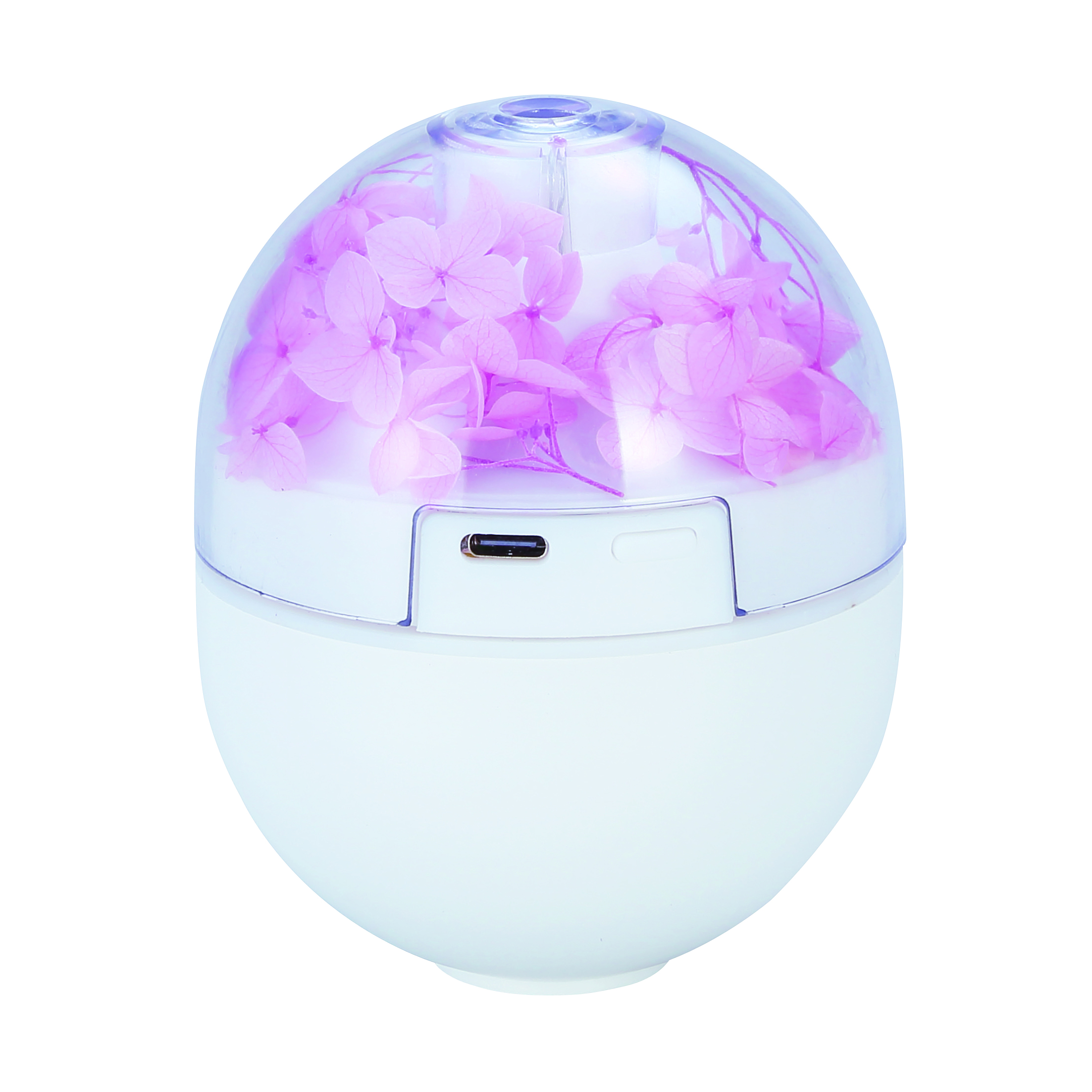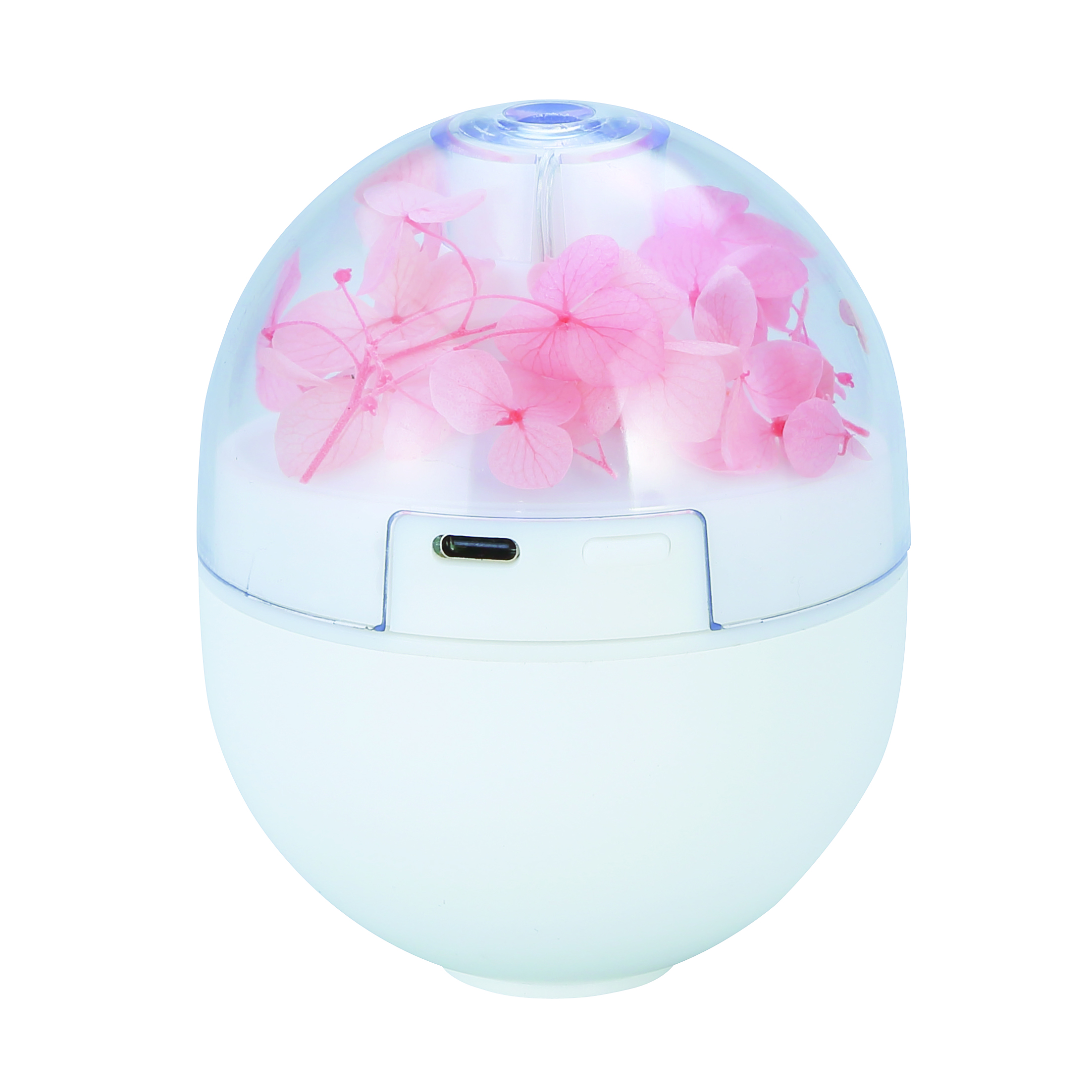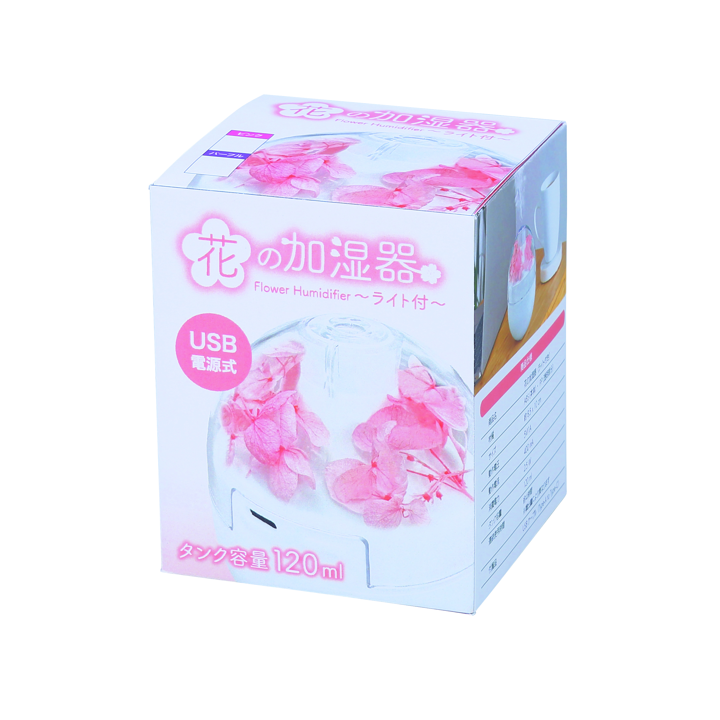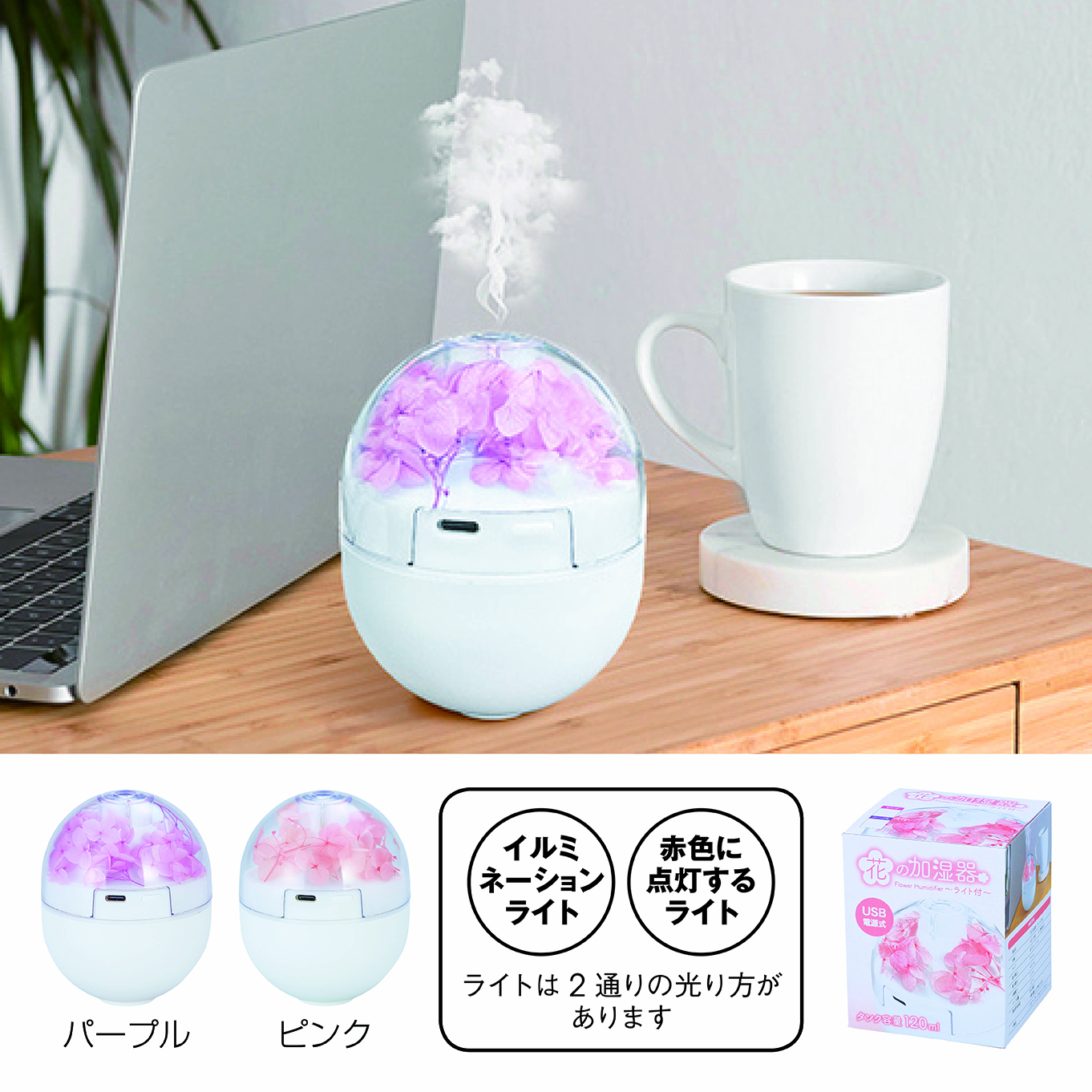 造花入りでインテリア性の高い加湿器。ライトアップでさらに印象的な演出を楽しめるのがポイントです。