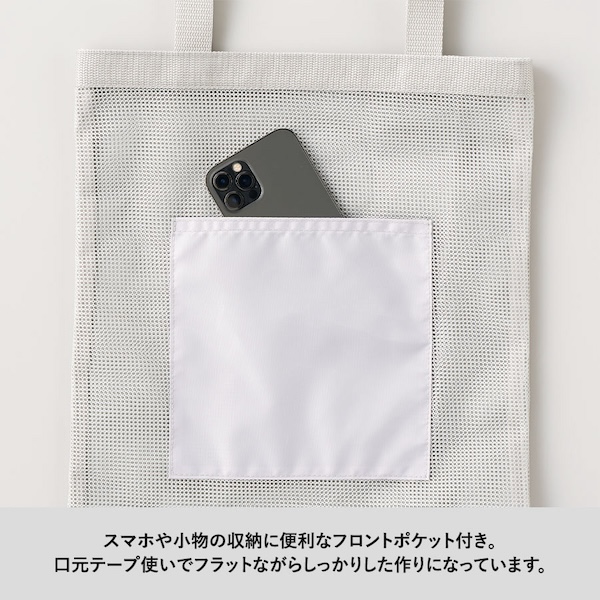 外ポケット部分に名入れ可能で、単色印刷はもちろん、フルカラー印刷にも対応しています。