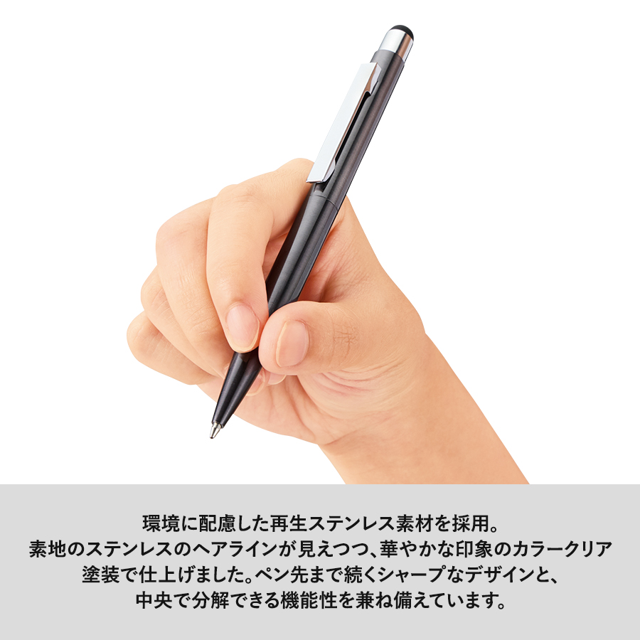 程よい重量感とステンレスならではの色味で高級感のあるタッチペン付きメタルボールペンです。