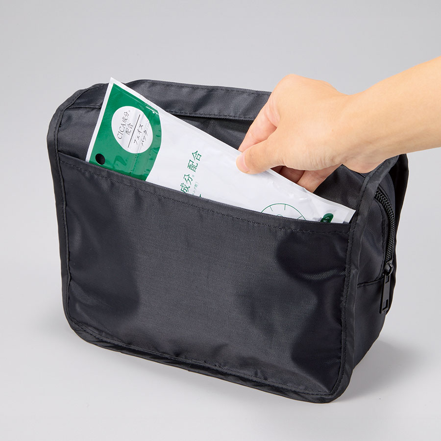 普段使いの洗面用具などが一式入るトラベルポーチです。