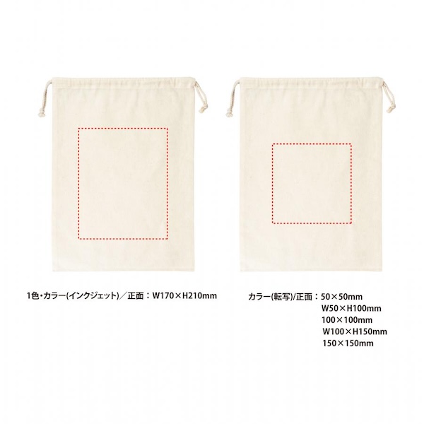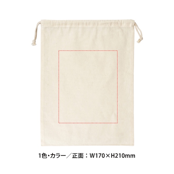 旅行やアウトドアの着替えや小物入れにも重宝する大きめサイズの巾着です。環境負荷の少ない素材を使用することでイメージアップにも繋がり広告効果も上がります。