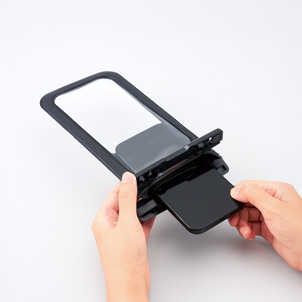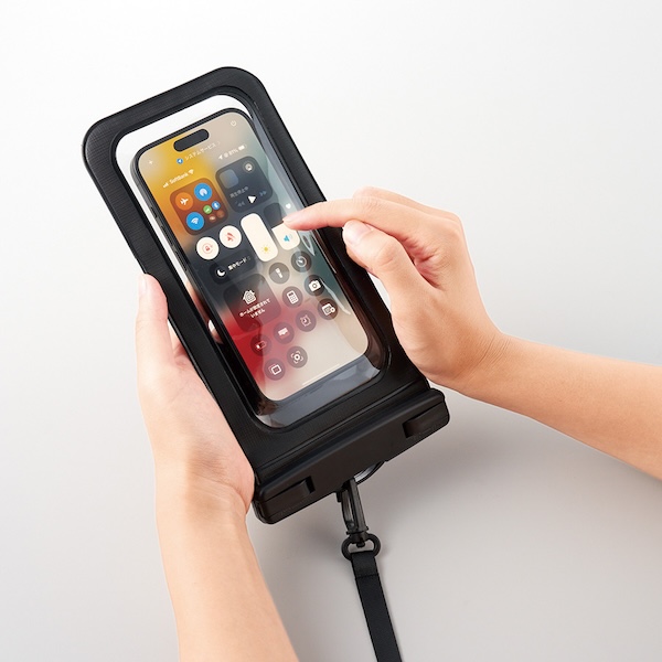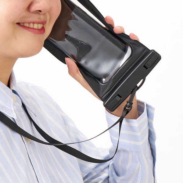 6.7インチ全面ディスプレイスマホに対応しているウォータープルーフポーチです。