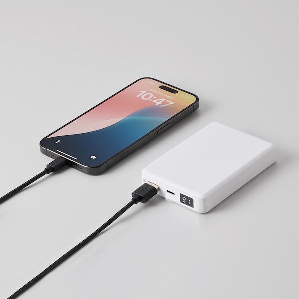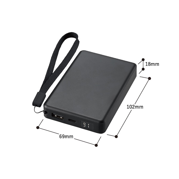 デジタル表示付きで残量がわかるモバイルチャージャーです。