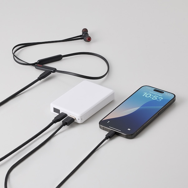 出力できるUSBポートと入出力ができるType-Cポートがついており、2台同時充電が可能かつ