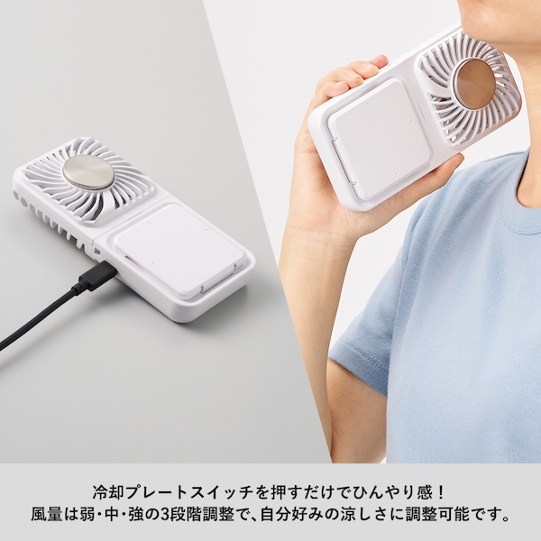 中央に冷却プレート付きで首筋や手首に当てれば、暑いときもひんやりと冷やしてくれます。