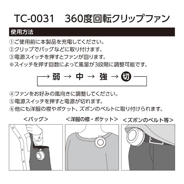 軽量で持ち運びやすいコンパクトなサイズ感でクリップで取り付けられるため、