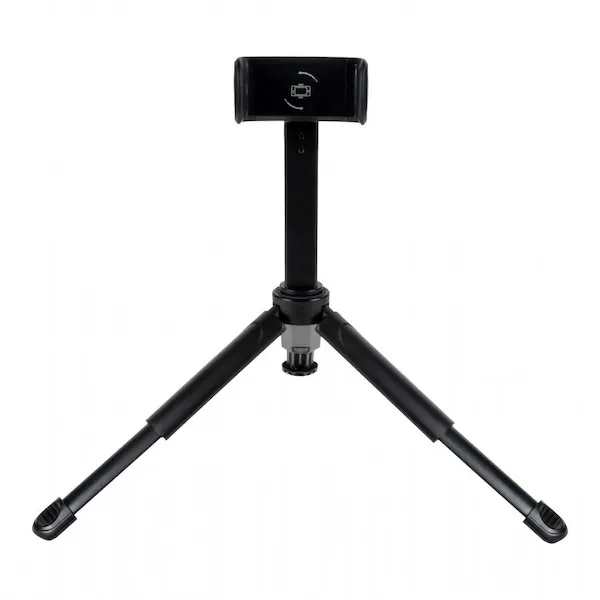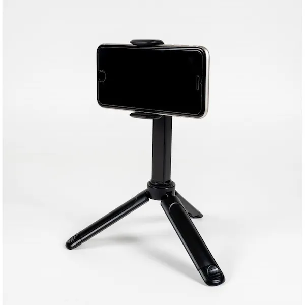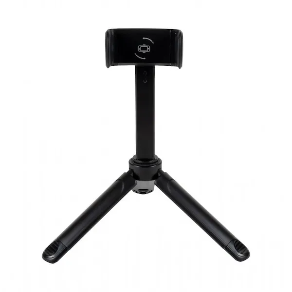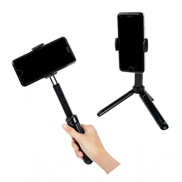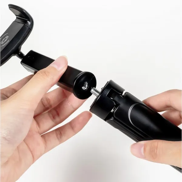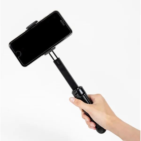 ハンドル部分は閉じると持ちやすく、開くとスタンドになるすぐれものです。自宅や外出先、旅先での写真や動画の撮影、配信にも活躍します。