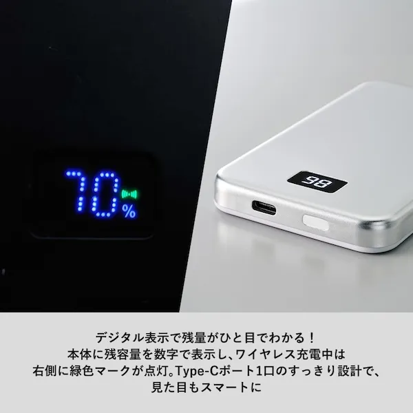 準固体電池を使用したマグネット式モバイルチャージャーです。