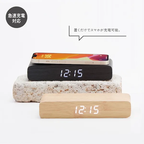 ウッドワイヤレスチャージャークロック(10W)【カラー選択可】