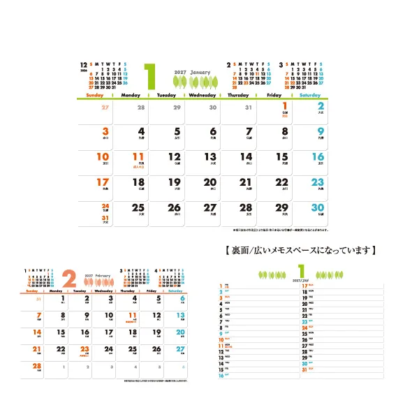環境にやさしいペーパーリング仕様のカレンダーです。
