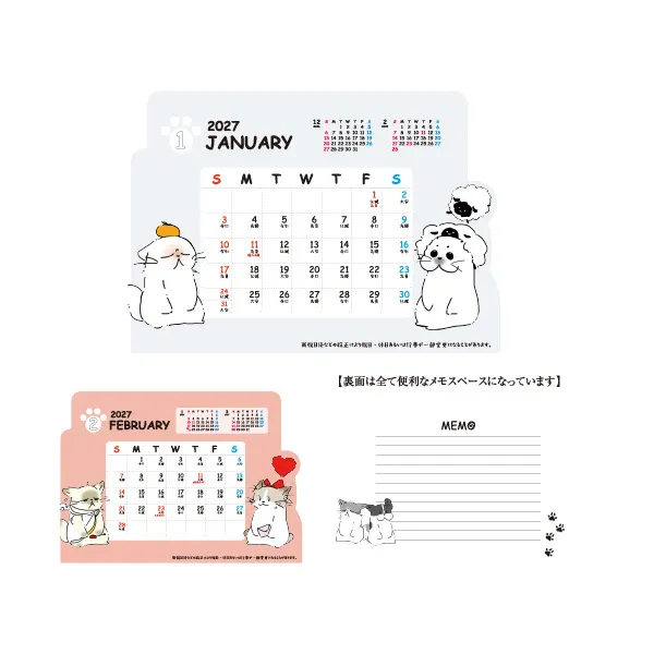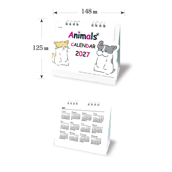 動物のイラストが入ったかわいいカレンダーです。一目でわかる年表が台紙に入っています。