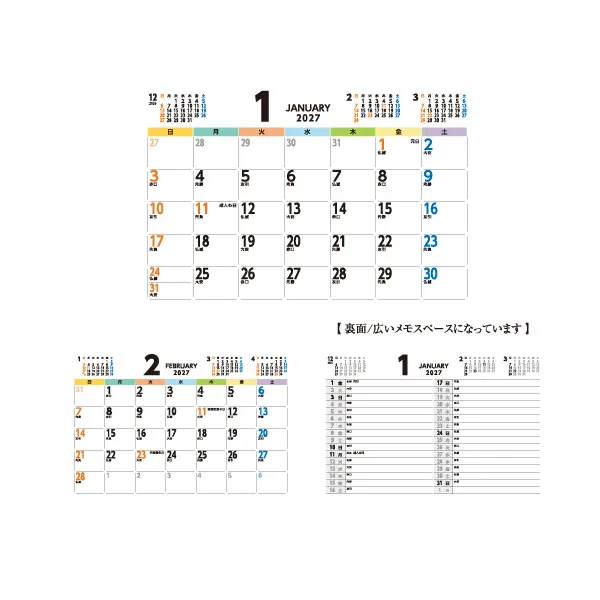 多様な色覚を持つ人に配慮したユニバーサルデザインを採用しています。 サイズは125×180mmで、シンプルで見やすいデザインが特徴です。 可読性が高く、スケジュール管理がしやすいよう配慮されています