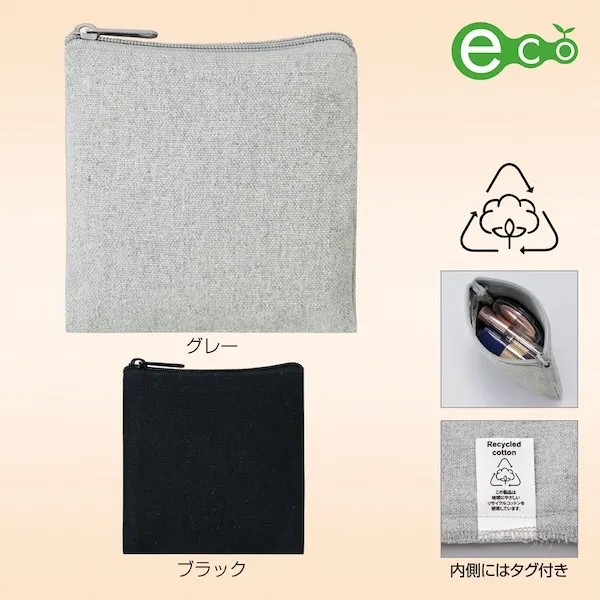 スフィア・リサイクルコットンスクエアフラットポーチ【カラー選択可】