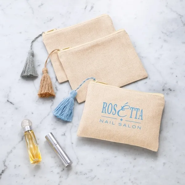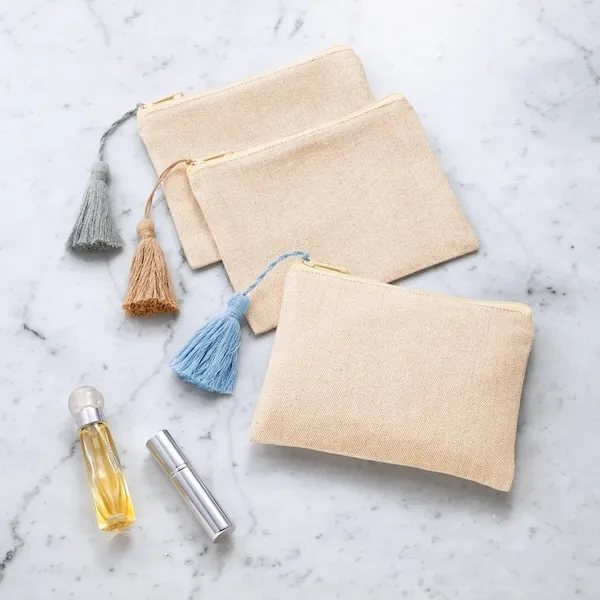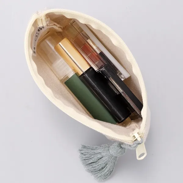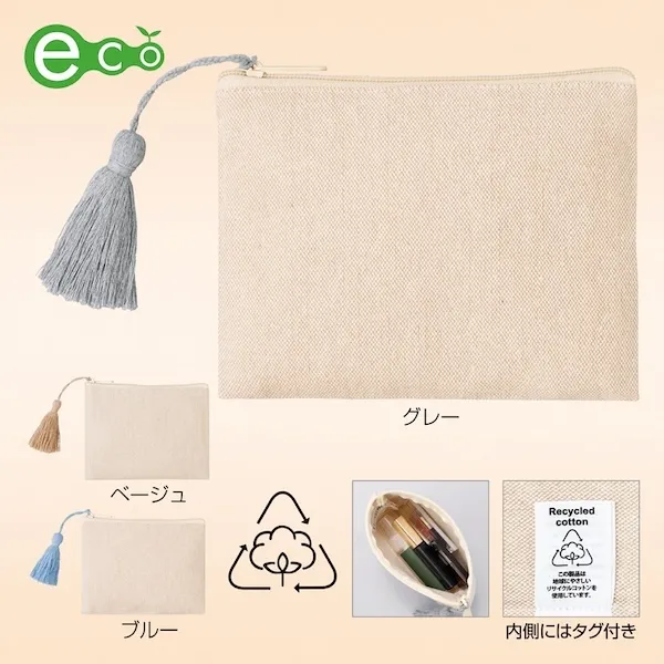 リサイクルコットンタッセル付きフラットポーチ【カラー選択可】