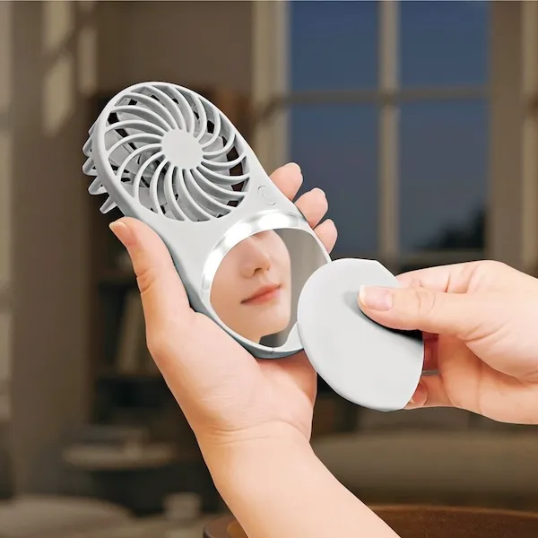 ファンで涼む、ミラーでチェックがこれ1台で出来る、ミラーとライトが付いた女性に嬉しいスマートファンです。暑さ対策アイテムは春夏の販促品の中でも特に人気のジャンル!アウトドアだけでなく、社会人やファミリー向けなど幅広いイベントのノベルティにお使いいただけます。企業や会社の販促品・ノベルティでお困りの場合、おしゃれで安いオリジナルのものをご提案します。