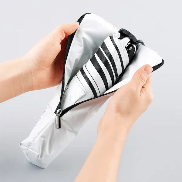 5本骨×グラスファイバーで軽量なので、バッグに入れてもカラビナで吊り下げて携帯しても快適。強度も高く長く愛用できます。晴雨兼用傘は春夏の販促品の中でも人気アイテム。おしゃれに敏感な女性や社会人、ファミリー向けなど幅広いイベントのノベルティにお使いいただけます。企業や会社の販促品・ノベルティでお困りの場合、おしゃれで安いオリジナルのものをご提案します。