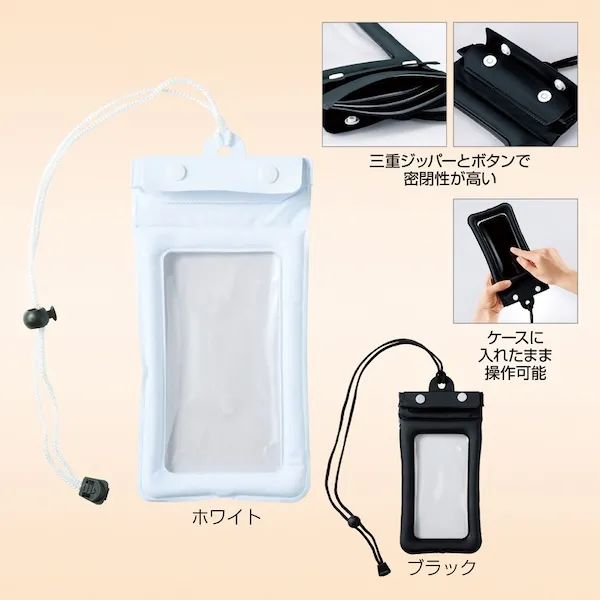 三重ジッパー+ボタンで安心密封。入れたままタッチ操作も可能な、レジャーやアウトドアの必需品。モバイル関連の販促品はビジネス、プライベートいずれも活用できるうえ、渡しやすく受け取りやすい手頃なサイズ感もポイントです。セミナーや企業説明会などのノベルティにどうぞ。企業や会社の販促品・ノベルティでお困りの場合、おしゃれで安いオリジナルのものをご提案します。