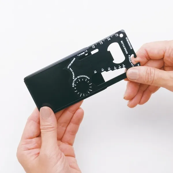 カード感覚で携帯できる本体に14の機能が揃ったマルチアイテム。アウトドアにも役立ちます。ポケットに収まるサイズなので携帯しやすく、1つ備えておくと安心です。学生向けのイベントや防災関連など幅広いジャンルのノベルティにお使いいただけます。企業や会社の販促品・ノベルティでお困りの場合、おしゃれで安いオリジナルのものをご提案します。