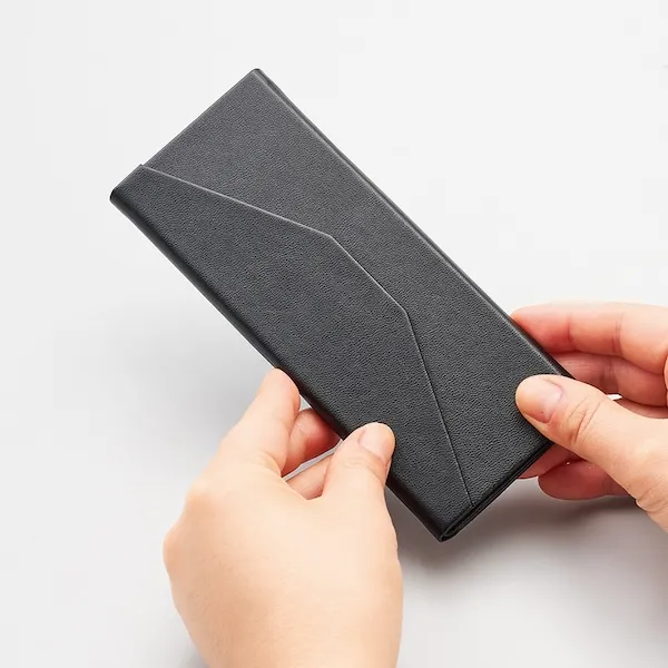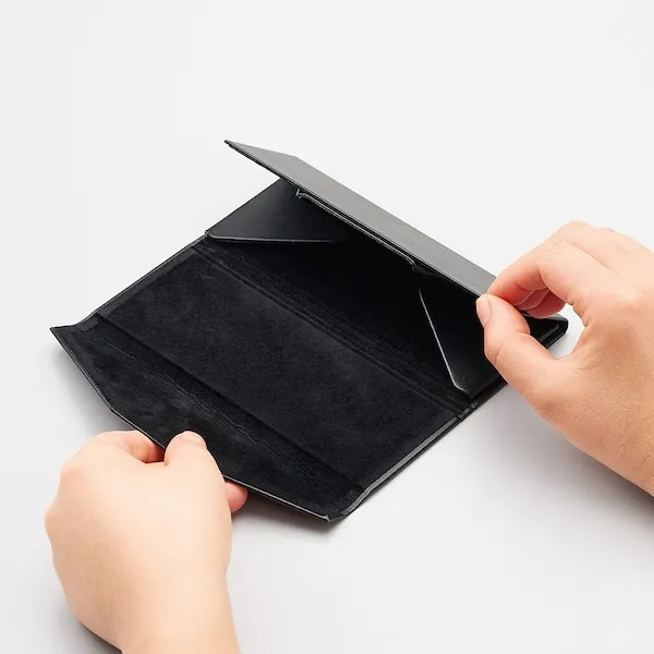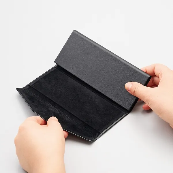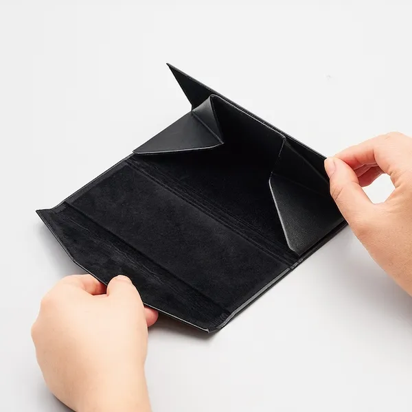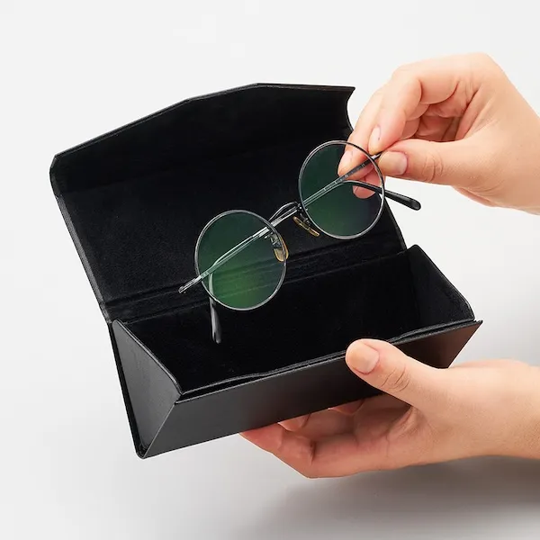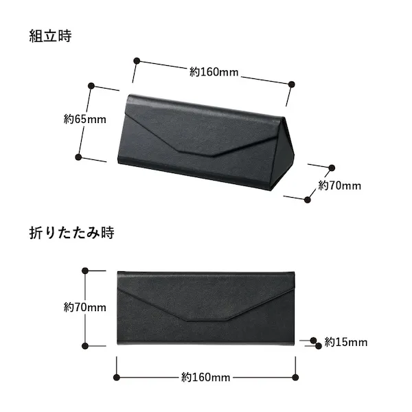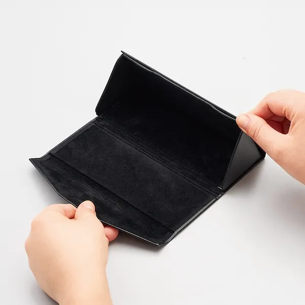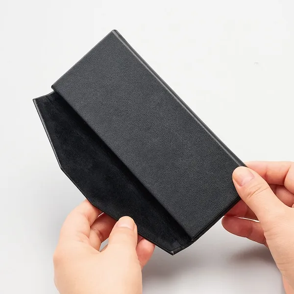 コンパクトに折り畳めて便利なメガネケースです。