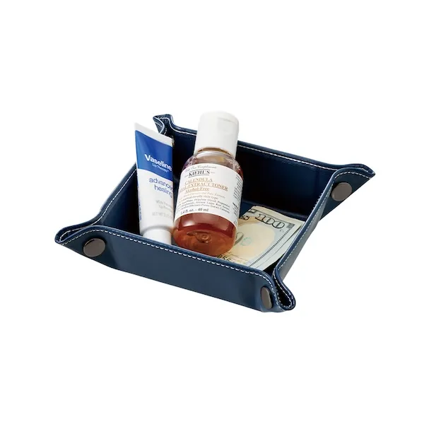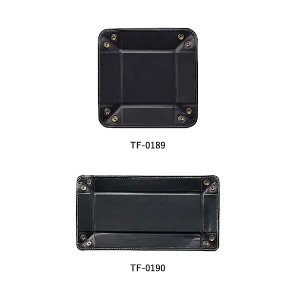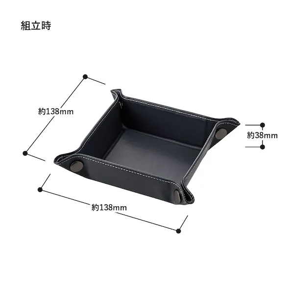 ちょっとした小物置きにぴったりなPUレザーを使用したトレイです。